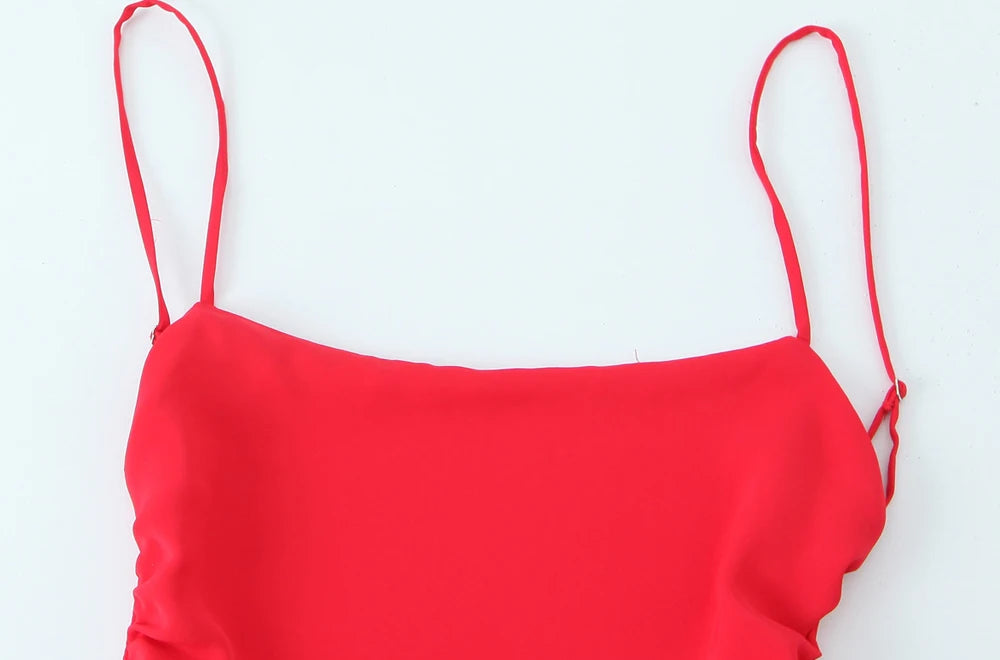 Draped Midi Dress for Women, Straight Neck, Thin Straps, Backless Female Dresses, Chic Fashion