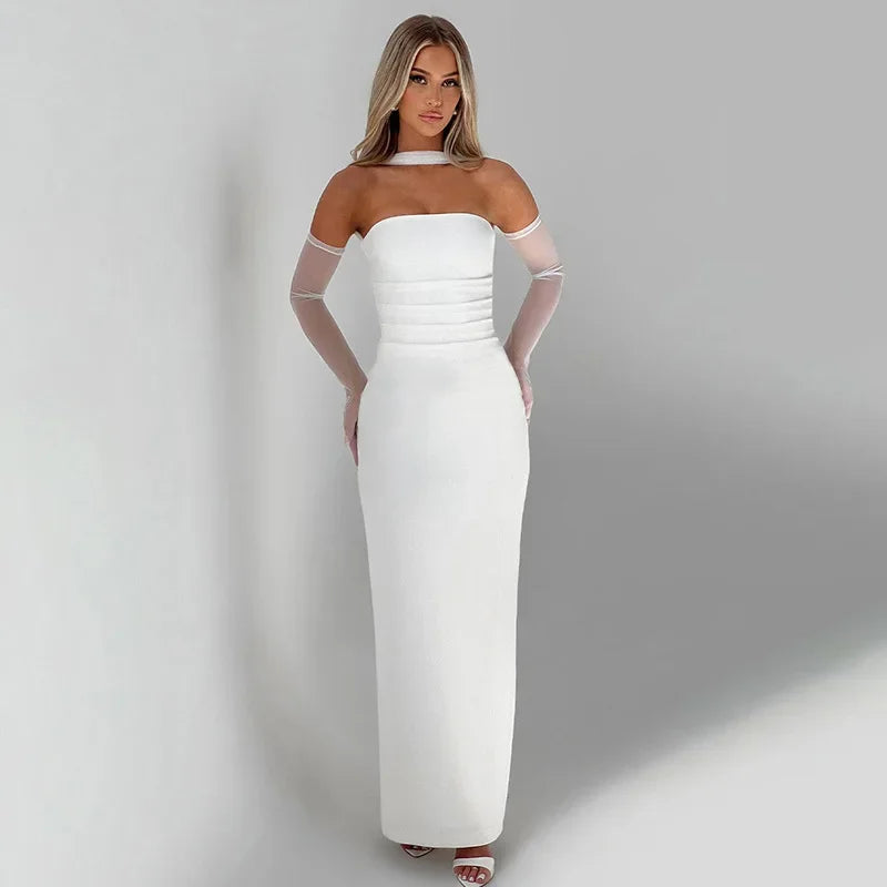 French Style Pure Color Sling Backless Fashion Sexy Slimming Dress Sash Draped Neckline Sleeveless Empire Waist Gown