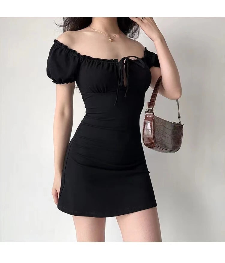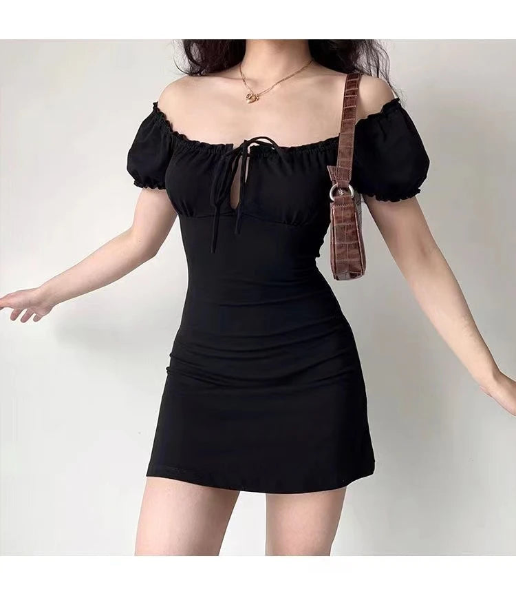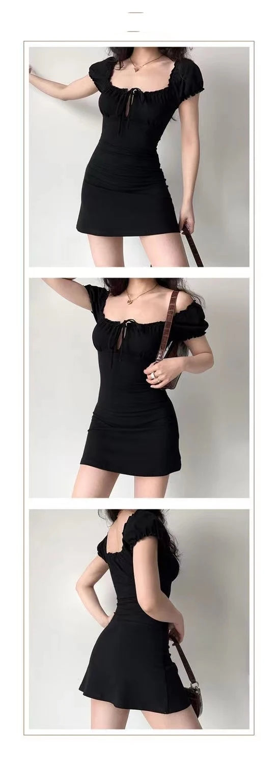 Summer Sexy Mini Dress Women Short Sleeved Lace up Hollow Casual Backless Folds Bodycon Black Dress Party Elegant A-LINE Dresses