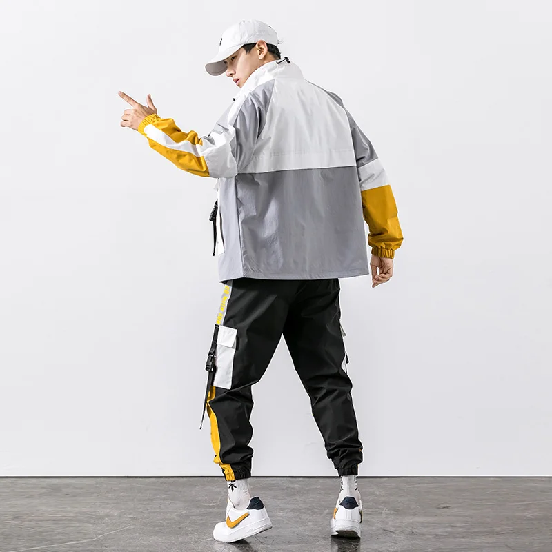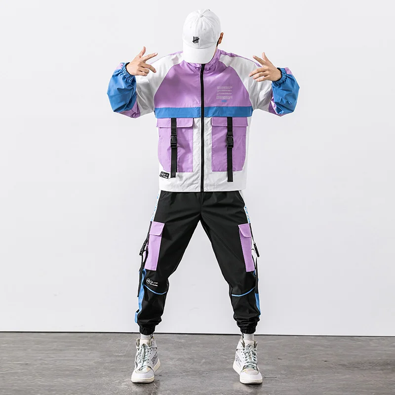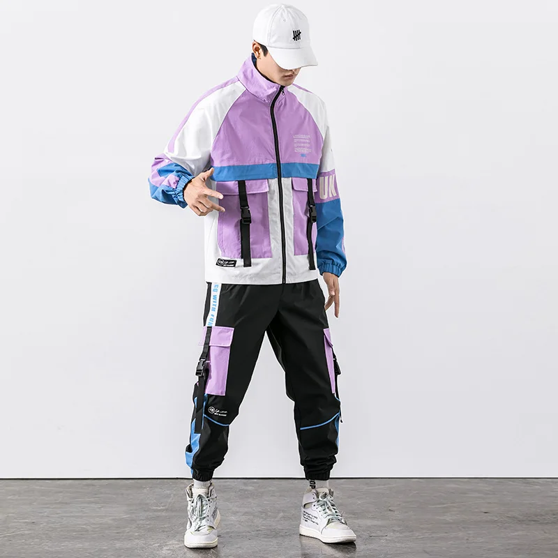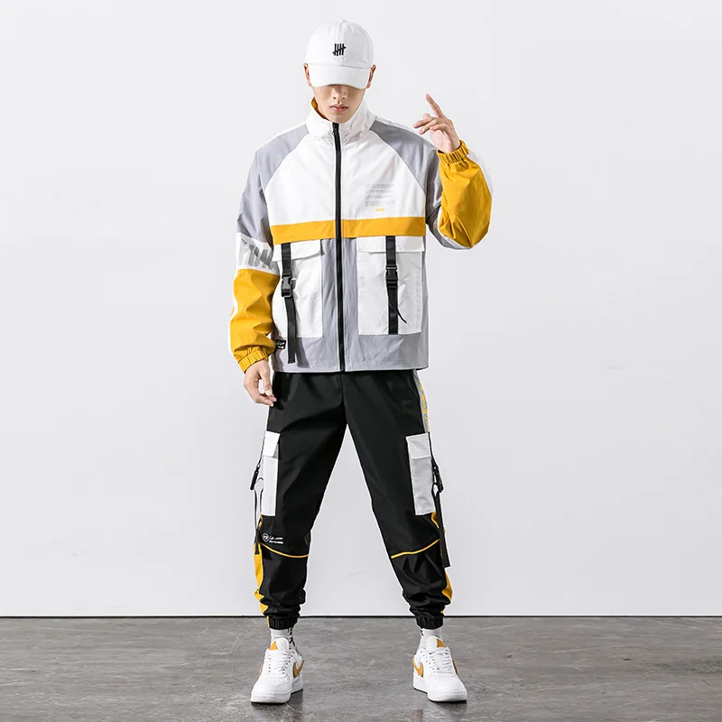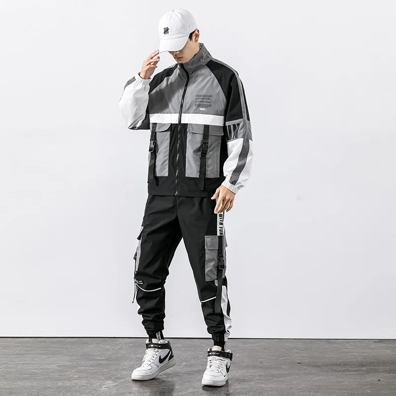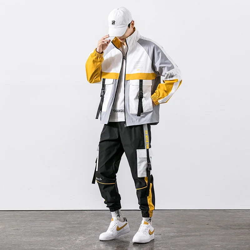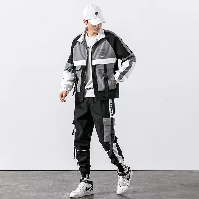 2022 Hip Hop Workwear jacket Mens Tracksuit Jacket+Pants 2PC Sets baseball loose Zipper Ribbons Coat & Long Pants Mens Clothes