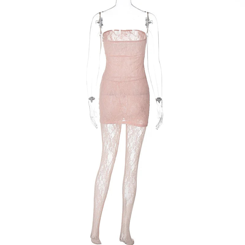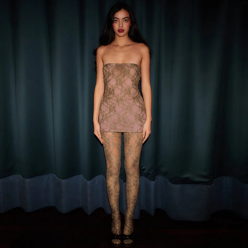 Hugcitar Mesh Strapless Flower Print Sexy Bodycon Mini Dress Foot Leggings 2 Piece Sets 2024 Fall Beach Vacation Y2K Clothes