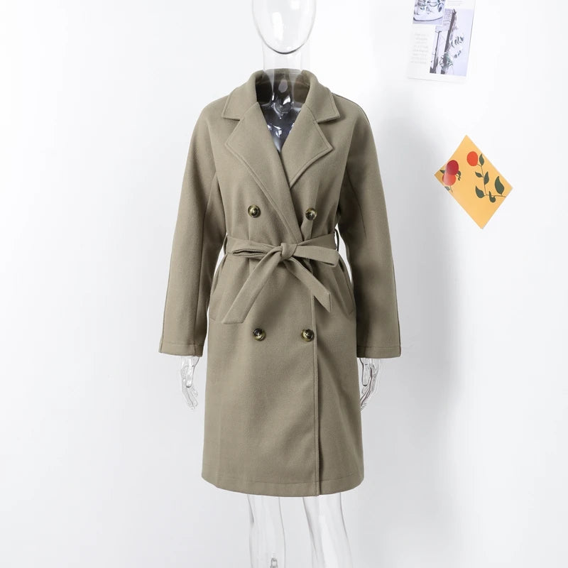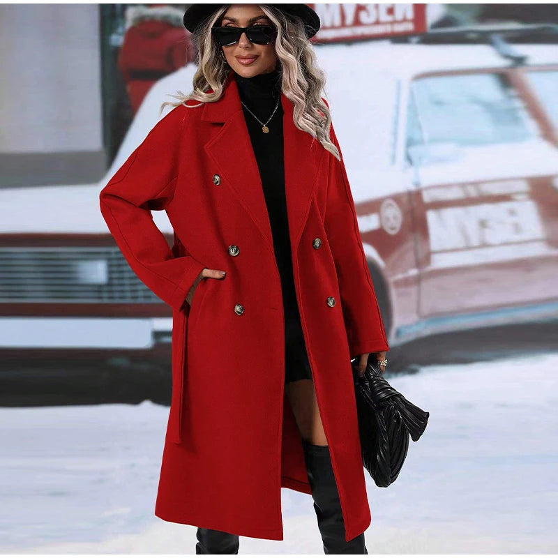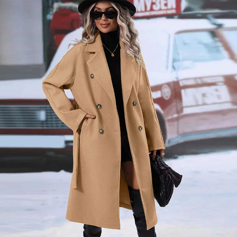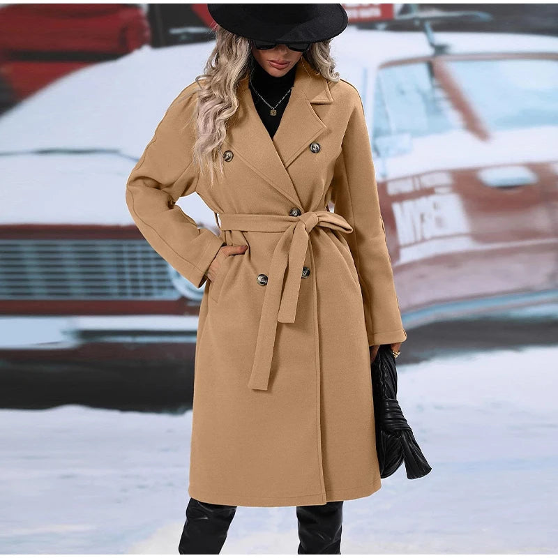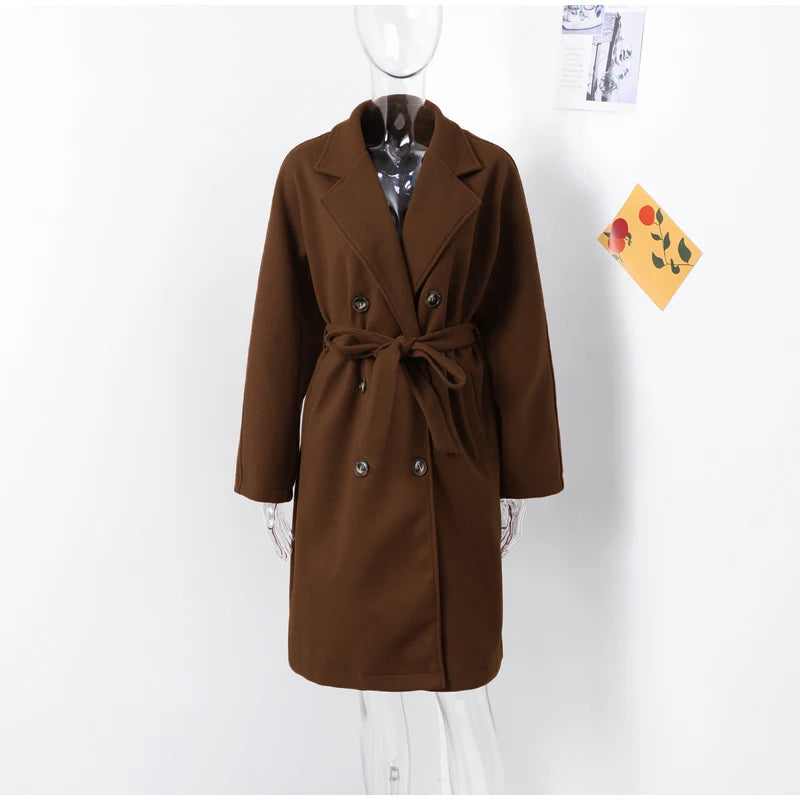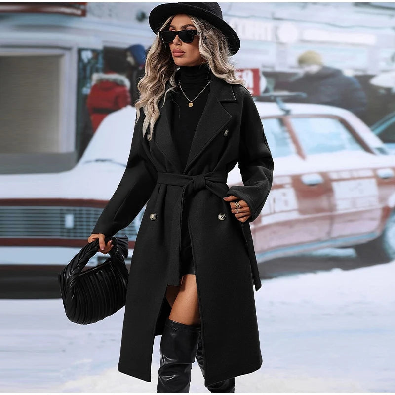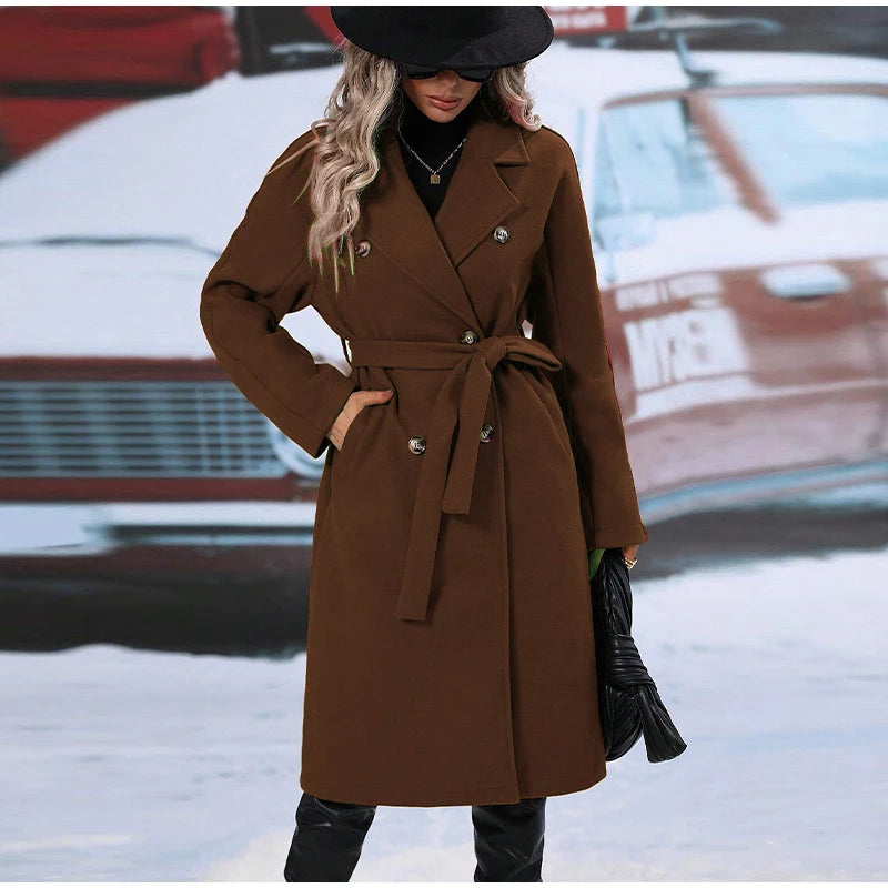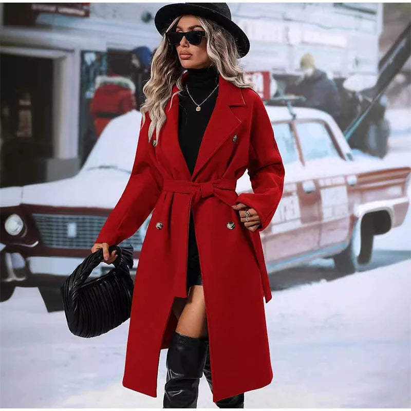 style 2: Women Laple Double-Breasted With Belted Long Sleeve Female Wool Coat