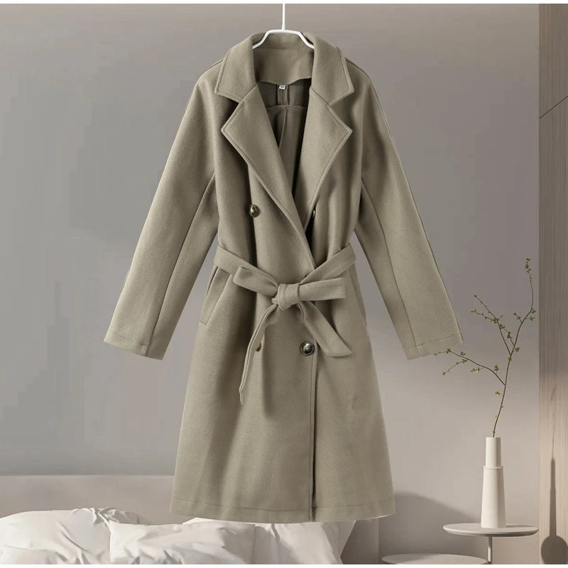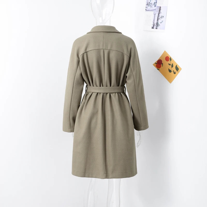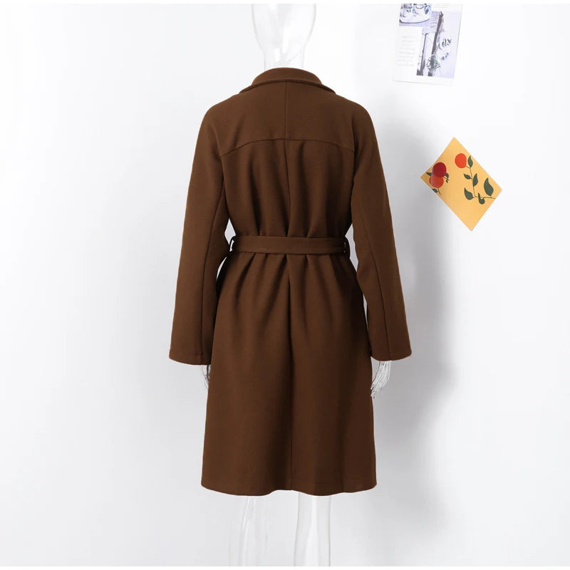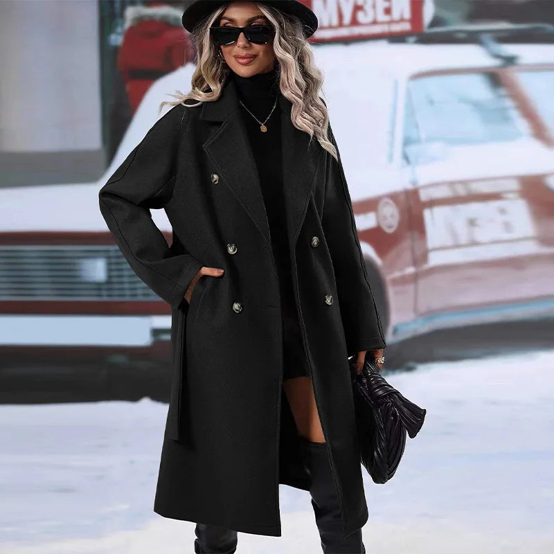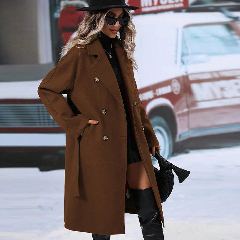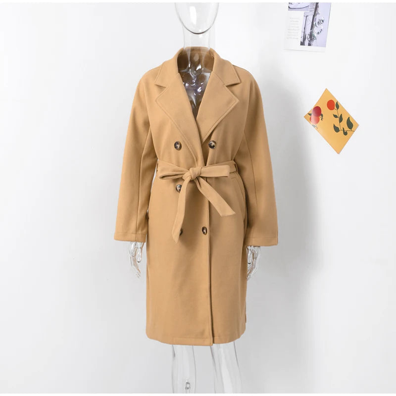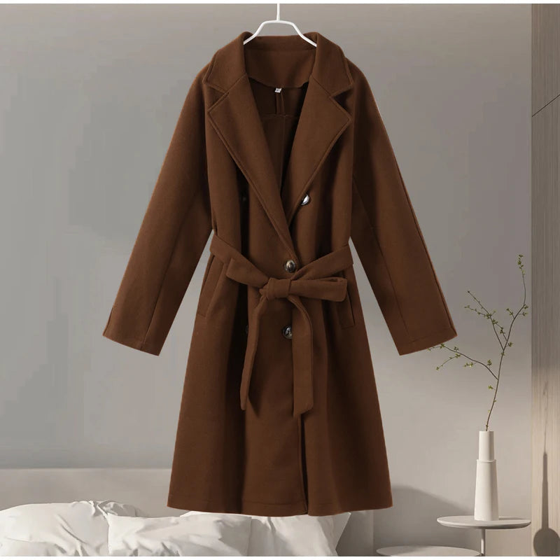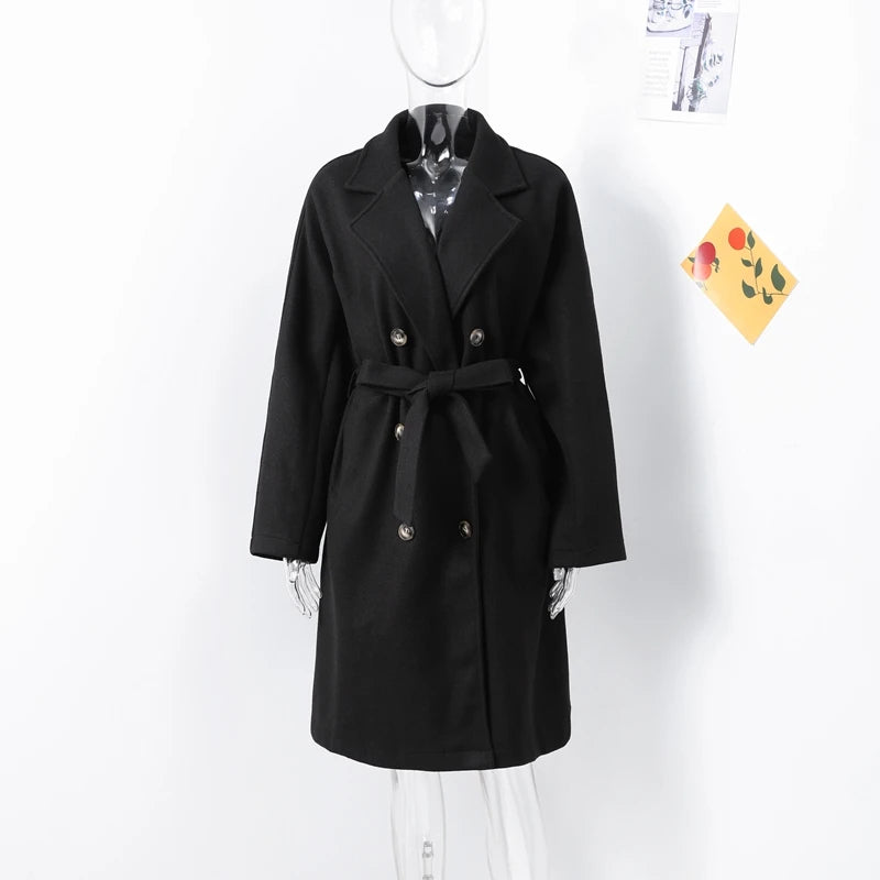 style 2: Women Laple Double-Breasted With Belted Long Sleeve Female Wool Coat
