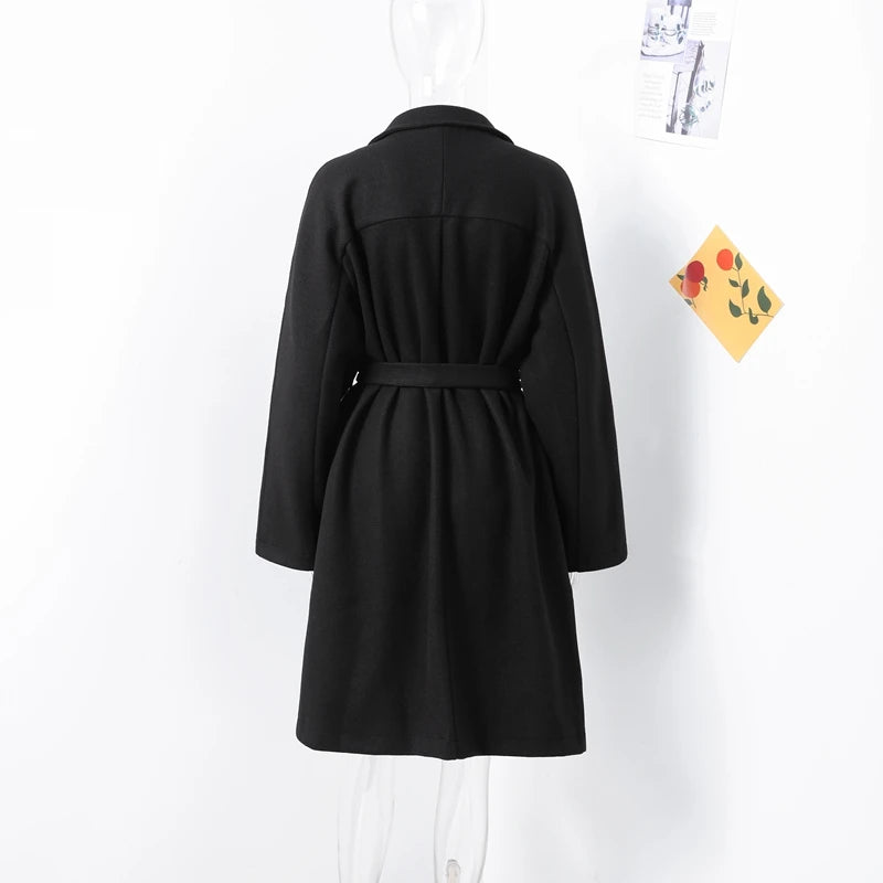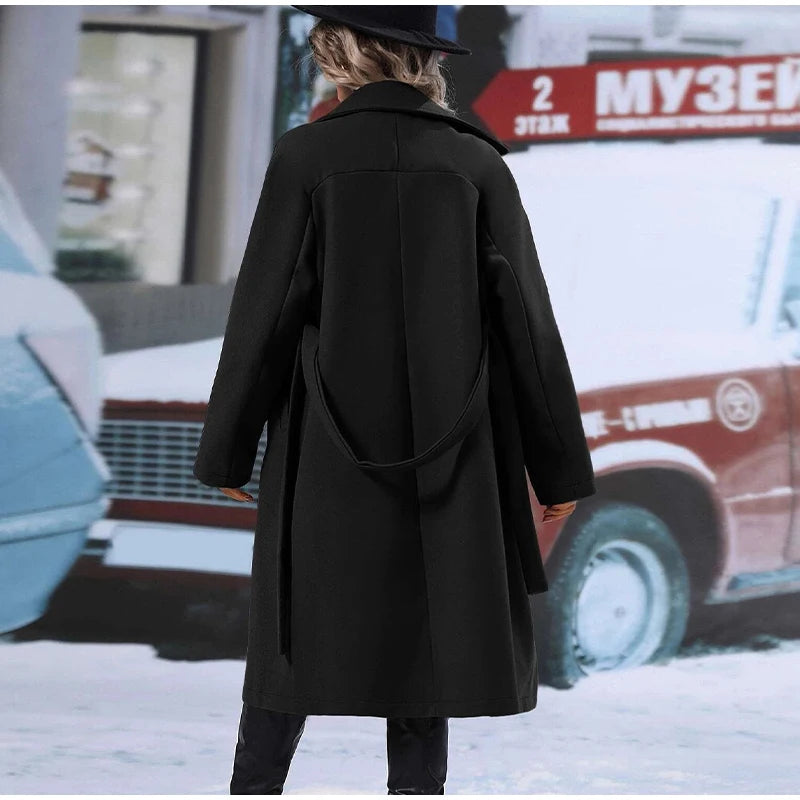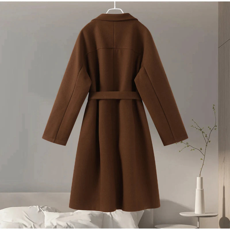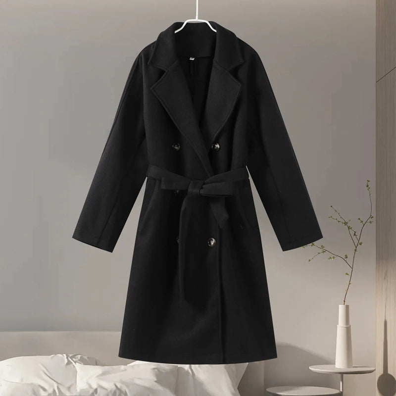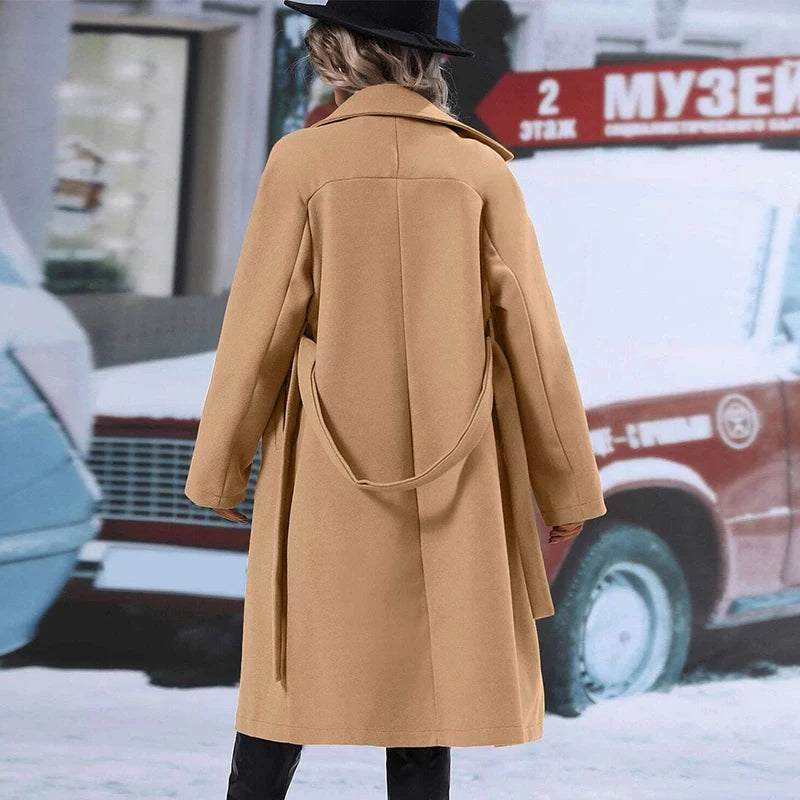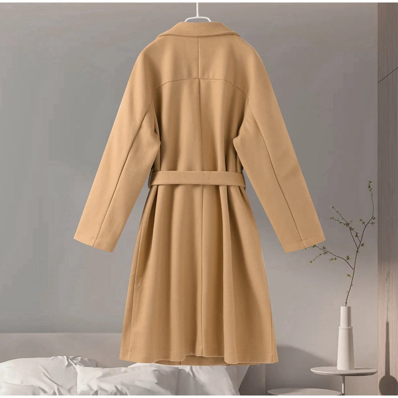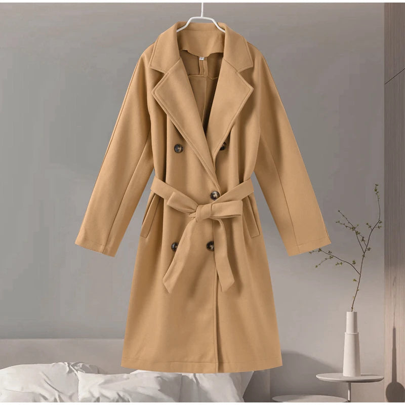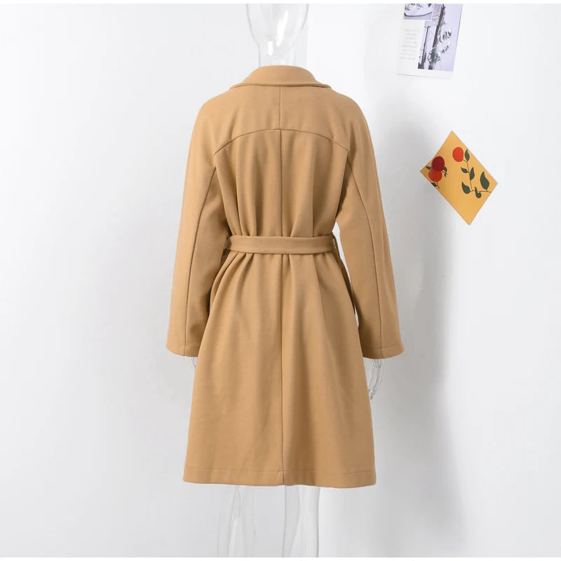 style 2: Women Laple Double-Breasted With Belted Long Sleeve Female Wool Coat