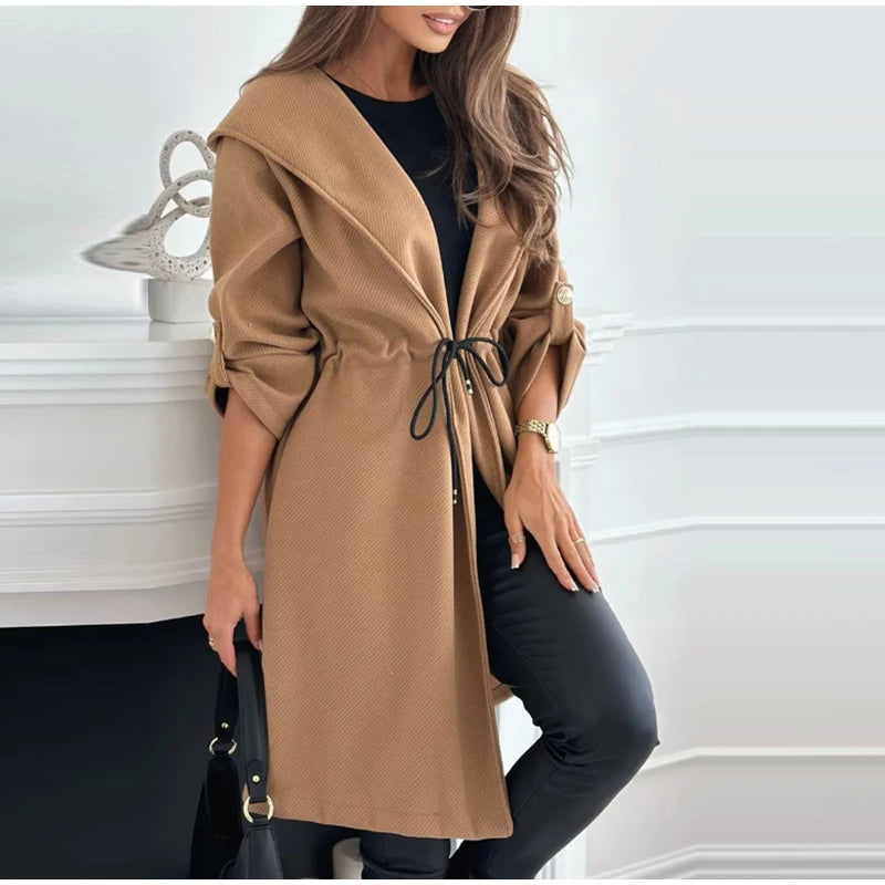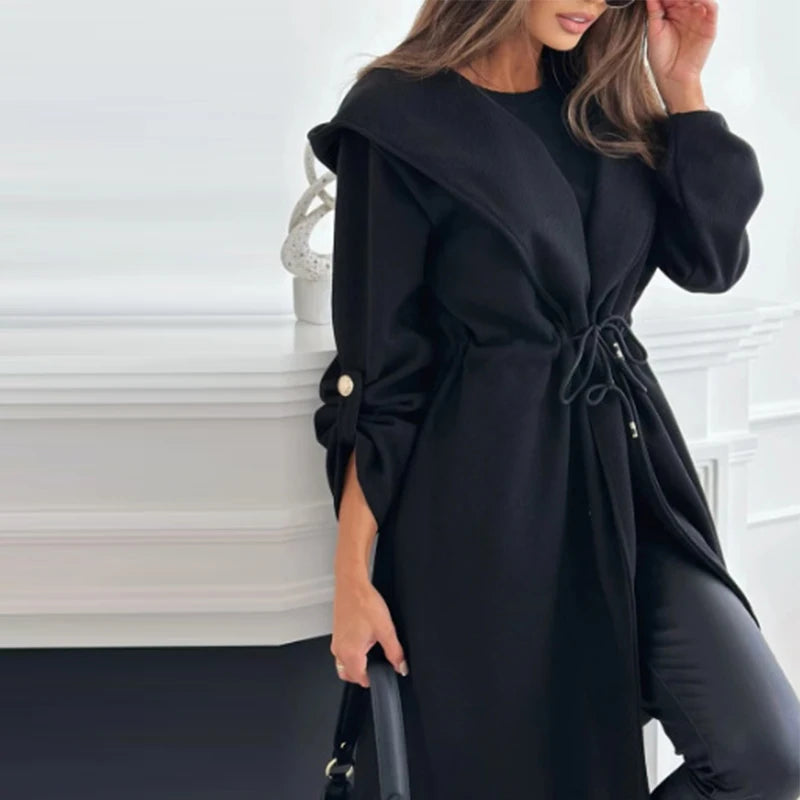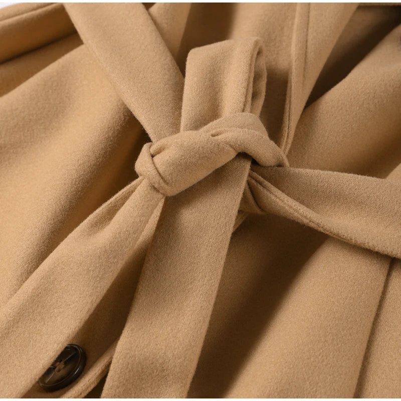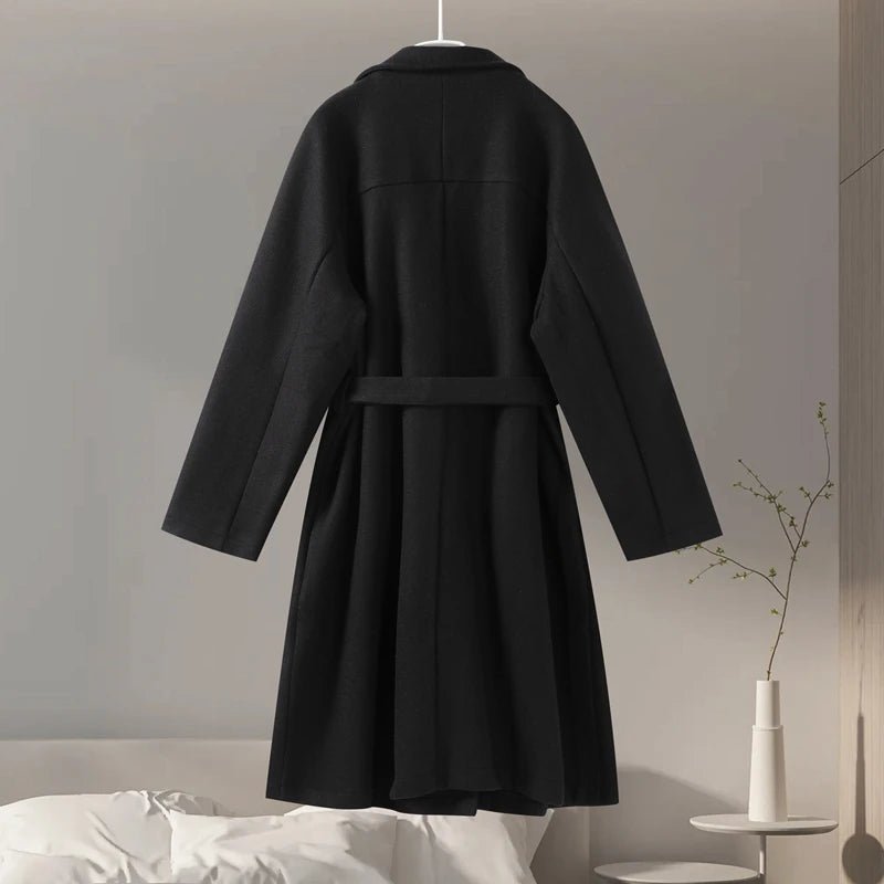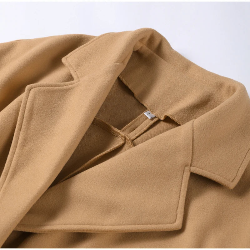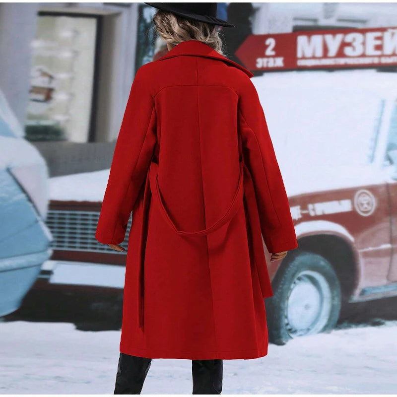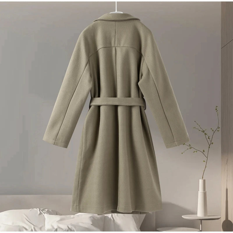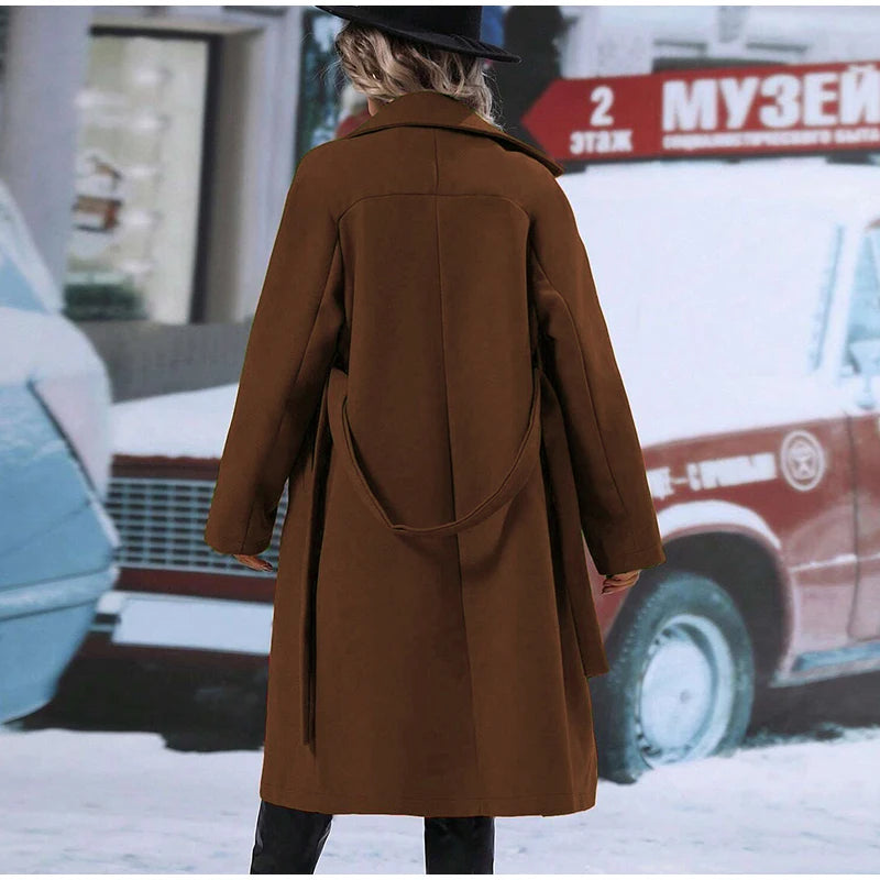style 2: Women Laple Double-Breasted With Belted Long Sleeve Female Wool Coat