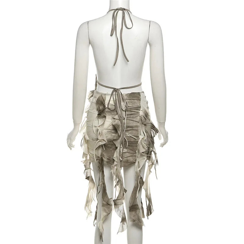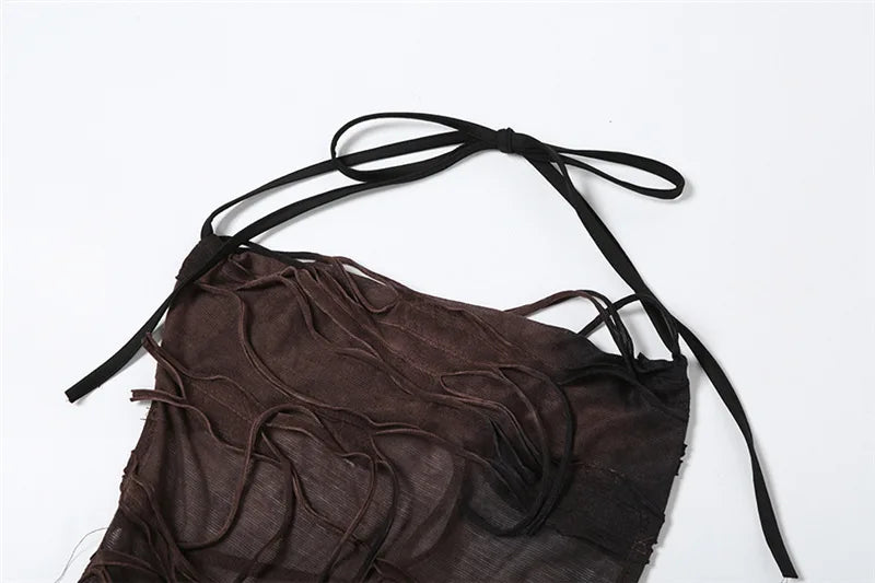Wild Original Gradient Tassel Retro Old Fashionable High Street Sexy Sweet Gentle Women'S Summer Thin Halter Dress