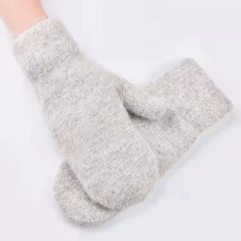 The following gloves can be worn by older children and adults alike. They are very stretchy and feel very comfortable and warm in cold winters. The newly developed glove is twice as heavy as the above-mentioned glove. This material is preferably used. Made of rabbit hair + acrylic (90g about )