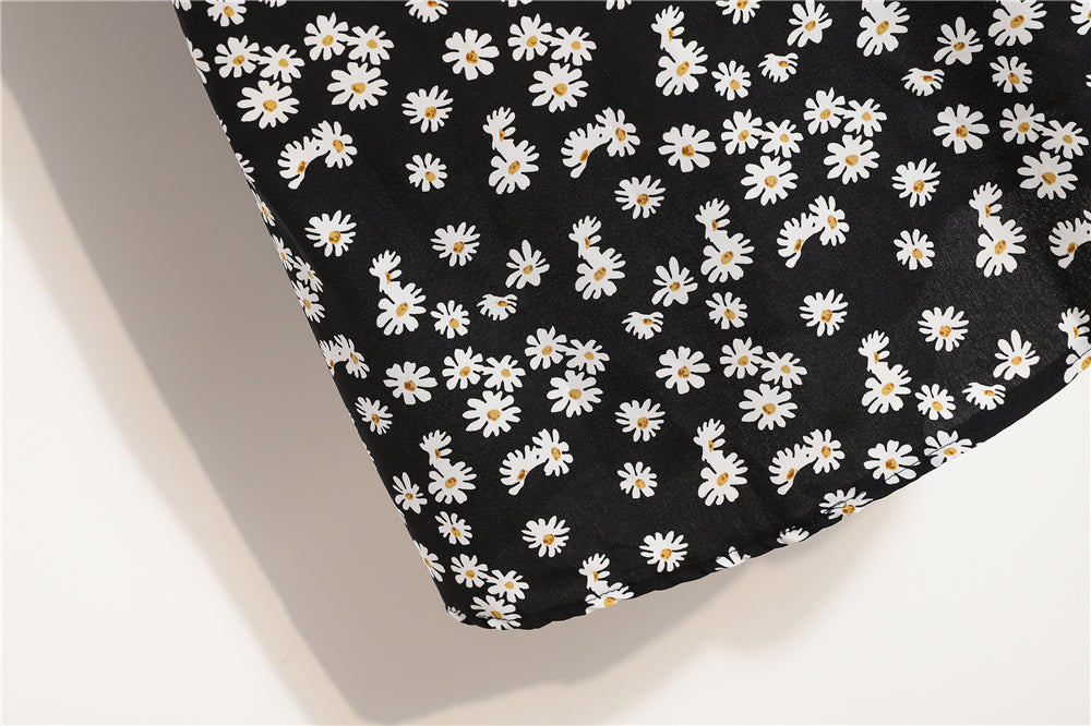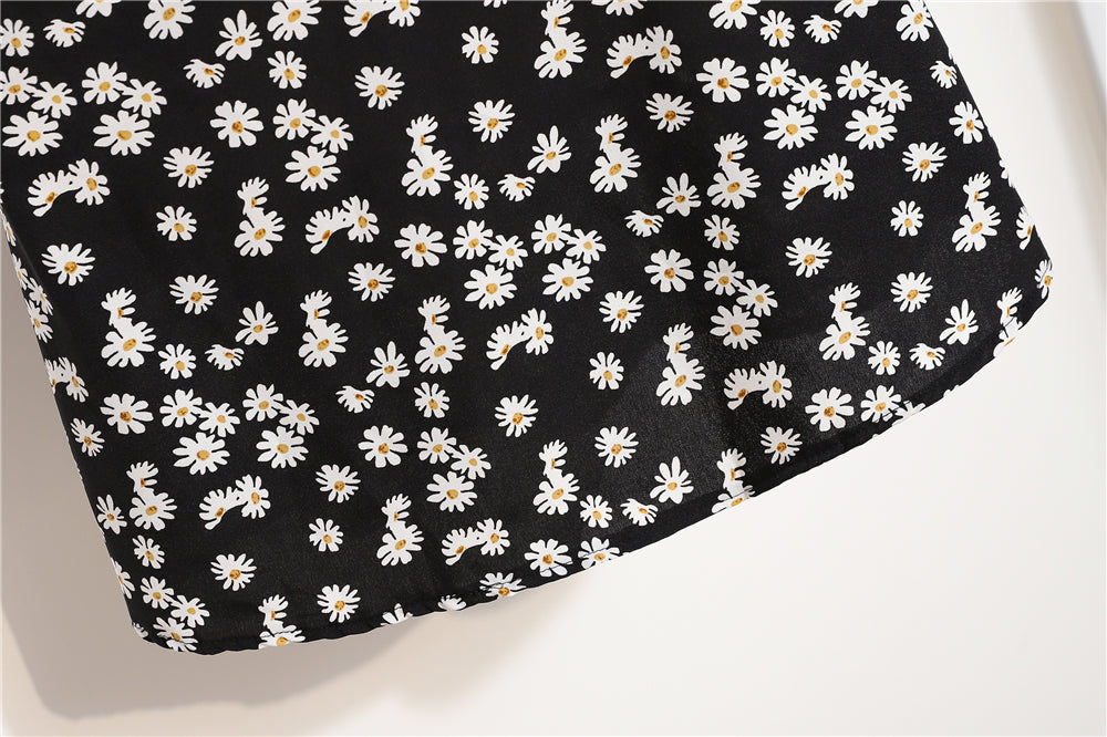 Women Mini Dresses Summer Fashion Female Vestidos Print Floral Chiffon Dresses Shirring Pleated Short Puffy Sleeve Casual Dress