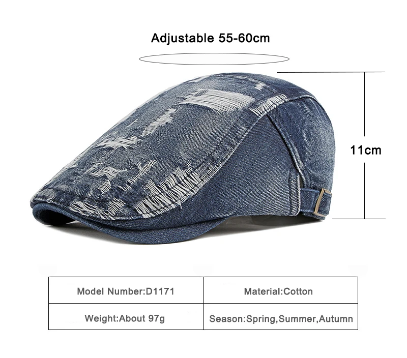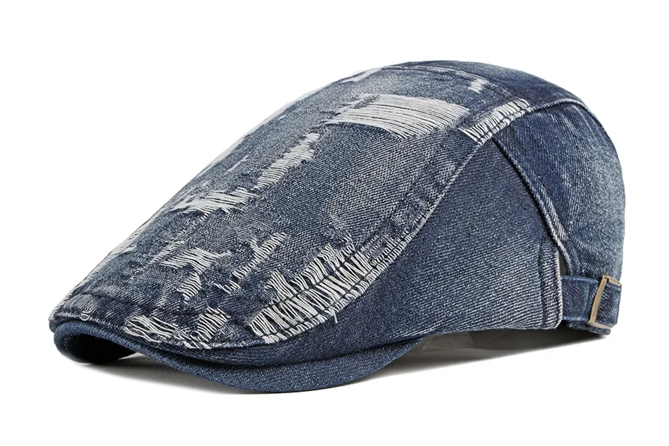 Unisex Retro Casual Mens Hats Denim Berets Hat Women Washed Cotton Duckbill Visors Herringbone Flat Caps Spring Summer